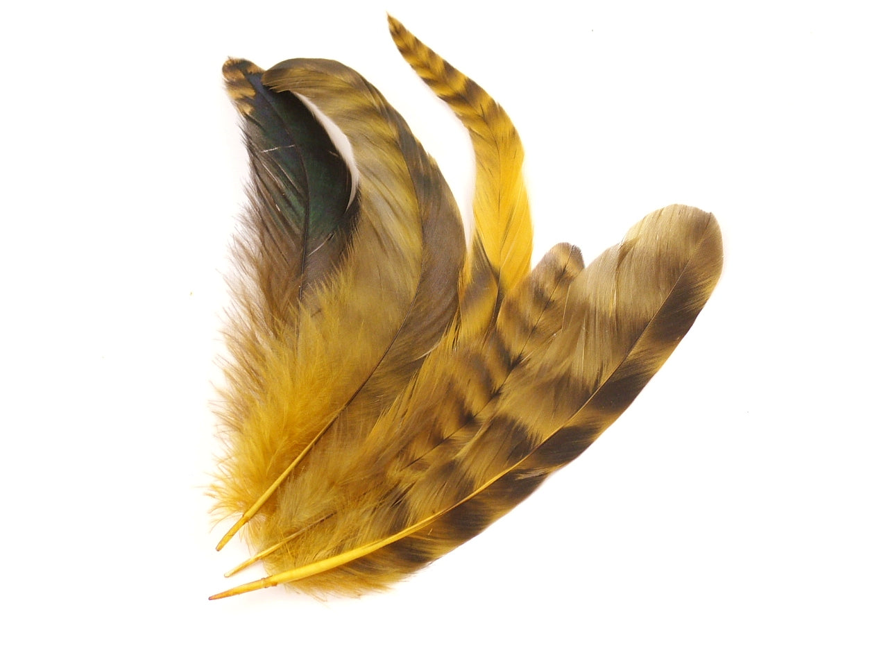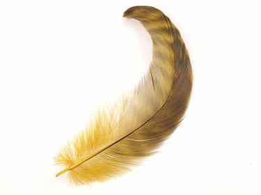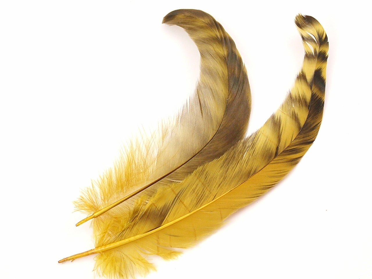 These striking naturally marked feathers have been dyed a rich gold colour to give a glorious effect.